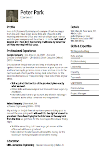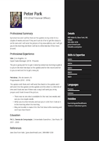 O Resume Builder requer o Android 9.0 e superior. A versão atual do software é 34.0 e você pode executá-lo apenas em inglês.